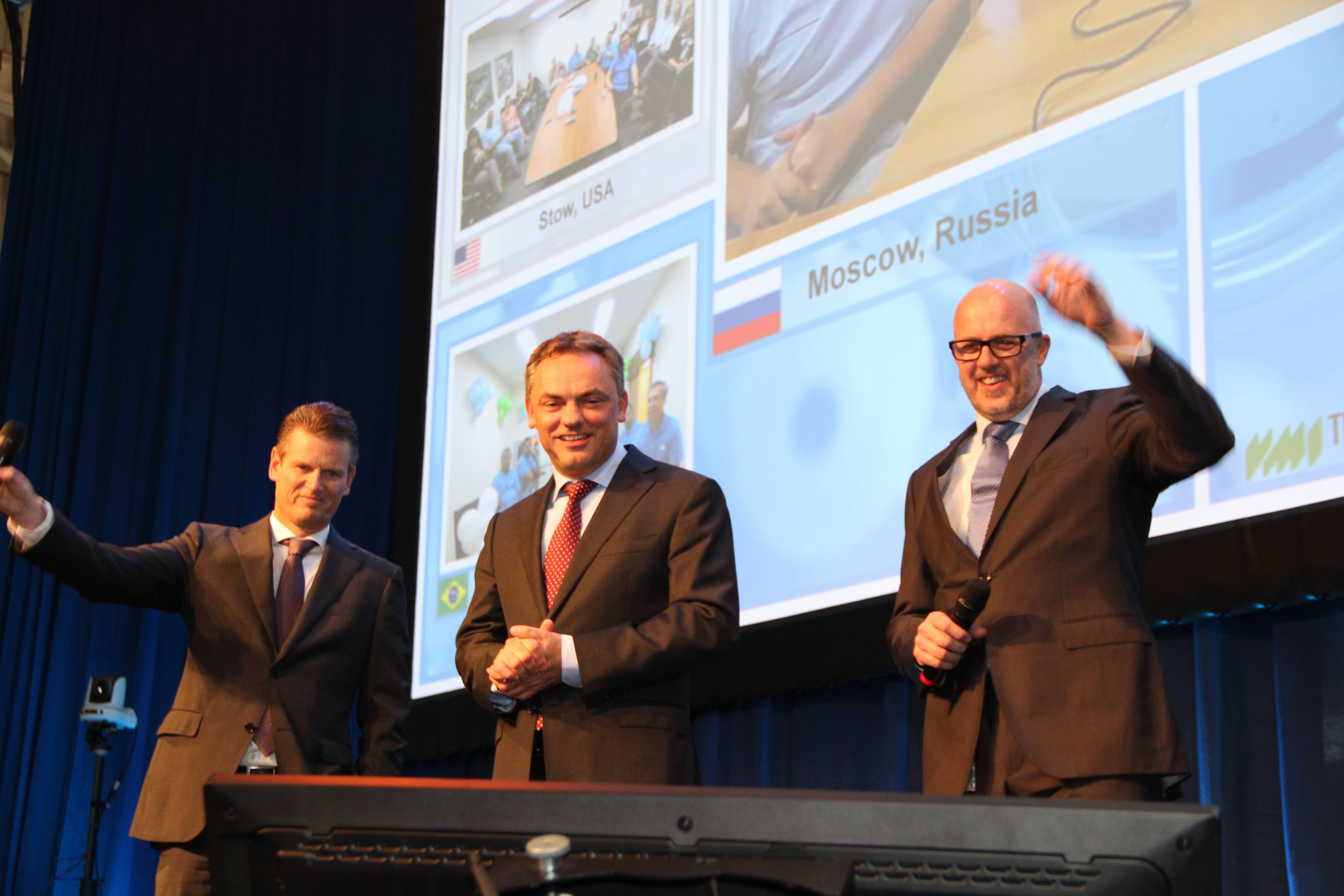One part of the celebration was the Global “Act” on 11 September. In the afternoon, all seven global VMI branches were connected live via a large video display. “Unprecedented in the entire 70-year history of our company!” as Harm Voortman, President and CEO of VMI Group, phrased it. Mr. Voortman, Guido Roncken, COO, and Arend Buter, CFO, welcomed all global branches. A compilation of videos from the seven branches was then shown to all 1200 VMI personnel worldwide, after which the Chairman of the Works Council presented Mr. Voortman with a gift from VMI personnel.
