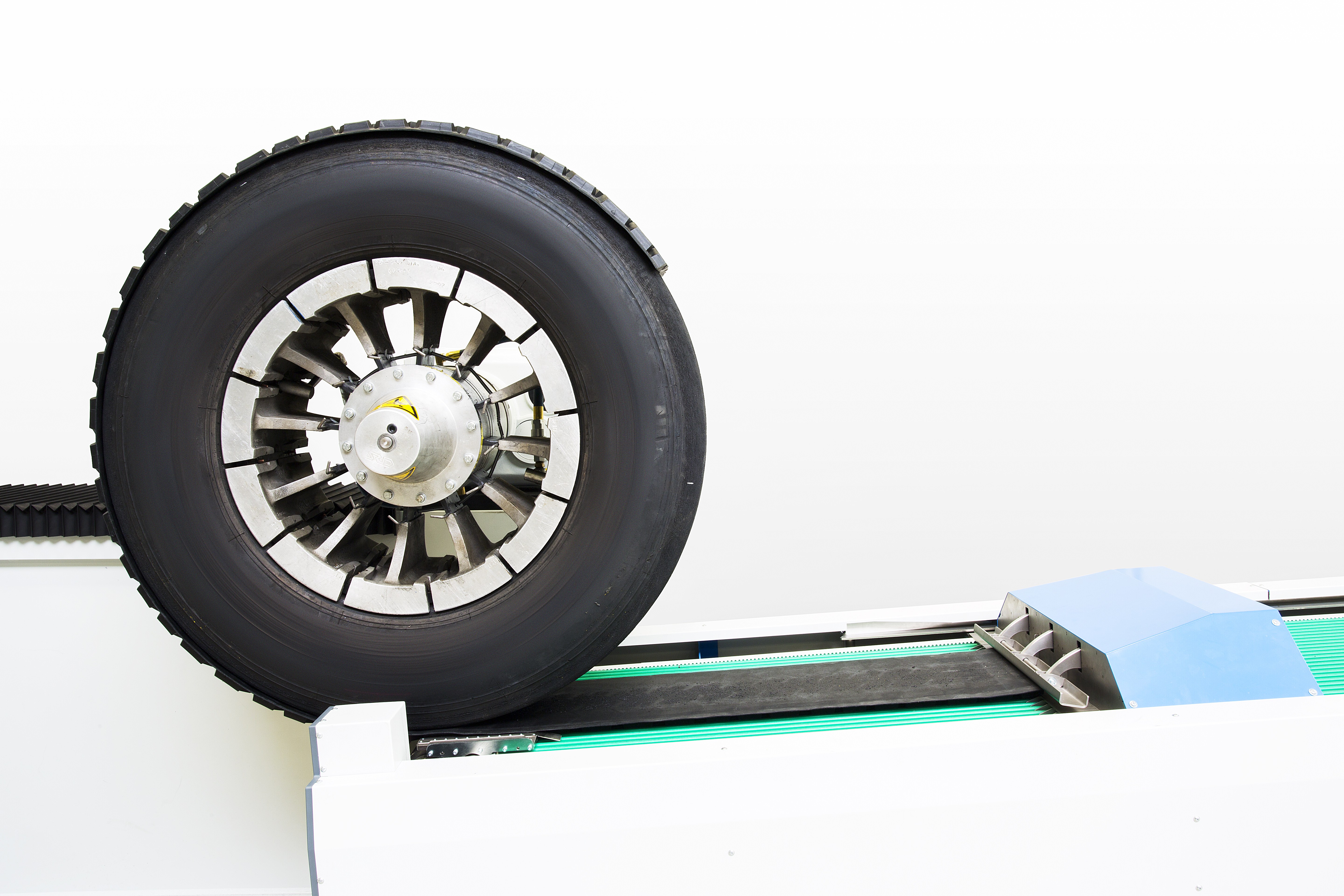 The new tread applicator is especially designed to deliver the highest quality and highest productivity. The RETRAXX with builder features automatic alignment of the tread on the casing which gives a high accuracy. The builder balanced stretching provides a perfectly matching splice. This innovation in automation improves the quality of your retreaded tire. The tread tension is optimally distributed around the tire.